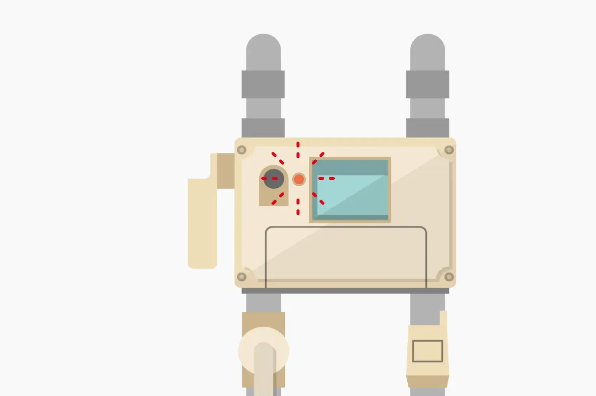 ガスメーターの赤ランプが点滅している場合には、『ガスメーターの復帰方法』ページの案内に沿って復帰操作を行ってください。